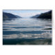 Reflecties die het meer van mijn boot afkijken, bergen op afstand. Wolken en hemel gezien op het oppervlak van het meer.