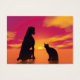 Silhouette noire d'un chat à côté du chien assis et regardant le beau coucher de soleil rouge