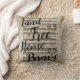 "Land of the Free, Home of the Brave" is geschreven in script over sheet muziek voor de myn, Star-Spangled Banner. De woorden van Francis Scott Key lezen: O, zeg je tegen het vroege licht van de zonsopgang, wat zo trots we hebben gegeten op de laatste gok van het schemerlicht? Wiens brede strepen en felle sterren, Door het gevaarlijke gevecht, O'er de rampart die we zagen, waren zo galant aan het streamen? En de rode blik van de raketten, de bommen die in de lucht barsten, leverden het bewijs dat onze vlag er nog steeds was, O zeg, wringt die sterrenspangled banner, O'er het land van de vrije en de thuis van de dappere? De antiek blik geeft deze gooiende kussen een gevoel.