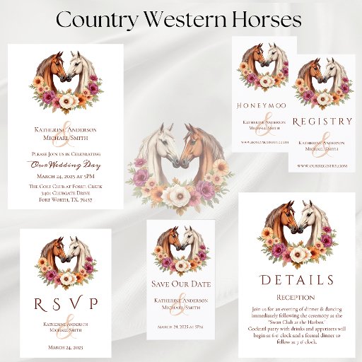 Country Western Horses Wedding Collection White Ontworpen door Art Colory