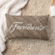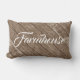 Robuust patroonkussen met een rokend schild met het woord "Farmhouse" aan de voorzijde in krullend. Ideaal voor de slaapkamer, woonkamer of waar dan ook, u wilt een tikje pantserhuis aan uw huis toevoegen. Door Monkey Business Graphic Design, 2021.
