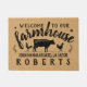 "Welkom in onze boerderij" tekst met 1 koe silhouet, 2 kippen (1 hen, 1 rooster), plus een bladspleet en dalende bladeren. Voeg je familienaam toe aan deze rotsachtige, roestvrijbuiter met een faux burlap achtergrond en zwarte silhouettes - perfect voor boeren en liefhebbers van het boerderij.