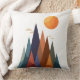 Een berggroep met een zon op de achtergrond, vectorkunst, geometrische abstracte kunst, verticaal behang, groen en oranje thema, maanlicht op de bovenste achtergrond, aardse kleuren.