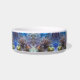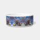 De mooie leeuwenvis op dit medium Pet Bowl is aan het zwemmen in een kleurrijk zoutwateraquarium. Het is een originele foto van ZoeSPEAK die het patroon toont van dikke en dunne strepen en fancy vinnen op deze ongewoon uitziende vis. Het is een kleurrijke foto met het tropisch blauw, geel en roze van het aquarium en de zalmroze neus van de vis.