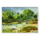 Een kleine rowboot is vastgebonden aan de kust nabij een zandboot op een vreedzame en afgelegen strook van de Ocklawaha-rivier in deze landelijke omgeving van het oude Florida. Het stroomgebied wordt omringd door een lappig blad met verschillende bomen die de smalle rivier overhangen en in de schaduw stellen. Gestorven stammen en het leven in aquatisch plant zoals waterlib, riet en kattails komen in en langs de beek voor. Een paar vogels vliegen in de heldere blauwe lucht boven. Kleuren van groen en blauw overheersen het schilderij met aanrakingen van bruine en gele grondtonen. Het originele schilderij van de waterverf op papier is van JC Prida © 2012. Gedrukt van een origineel kunstschilderij op papier door JC Prida.