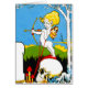 Un petit personnage de dessin animé blond comme un câlin avec des ailes et de grandes chaussures rouges qui cognent son arc en se tenant sur un crâne. Illustration du caricaturiste italien Antonio Rubino de la couverture de Maggiolata, 1906.