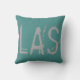 Gooi de kussens met LAS - Airport afkorting voor McCarran International Airport, Las Vegas, NV. Grungy urban Grey text op blauwgroen achtergrond