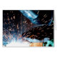Dit is een foto van een lasser omgeven door vonken.