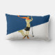 Grafisch kussen of kussen voor skiërs, met gebruik van gedurfde vormen en heldere, sterke kleuren. Het ontwerp is aangepast vanaf een oude reisposter uit 1920, waarop een stijlvolle vrouw skiester te zien is met een helder oranje stromend sjaal in de bries tegen een heldere blauwe hemel. Ze is op lange houten ski's, met vrije hielkoppels; en heeft één enkele skistok. Aan de voorzijde zeggen de woorden: Laten we naar Skiing gaan! in helder sinaasappel in een lettertype; Op de achterkant heb je gewoon het afbeelding van de vrouw skier. Een groot geschenk voor het skiën van vrienden of voor het versieren van een skistje.