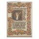 De tekst van het katholieke Latijnse Latijnse "Te Deum" in een gothisch blackletter schrift met een verlichte goudgrens met rode en blauwe klaverbladeren en wijnstokken. De hoofdletter T heeft een engel die in een scrol staat. De middeleeuwse stijl kalligrafie met een ingewikkelde florale grens wordt met de hand geplakt en geschilderd door kunstenaar Letizia Morley. Een uniek, Christelijk decoratief artikel dat voor vele verschillende gelegenheden geweldig is.