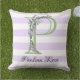 Lavendel licht paarse witte strips monogram buitenkussen