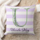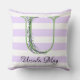 Lavendel licht paarse witte strips monogram kussen