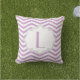 Lavendel paarse, witte chevron zigzagpatroon gooien / gooien accent decoratief kussen met monogram in een grijs lijst.