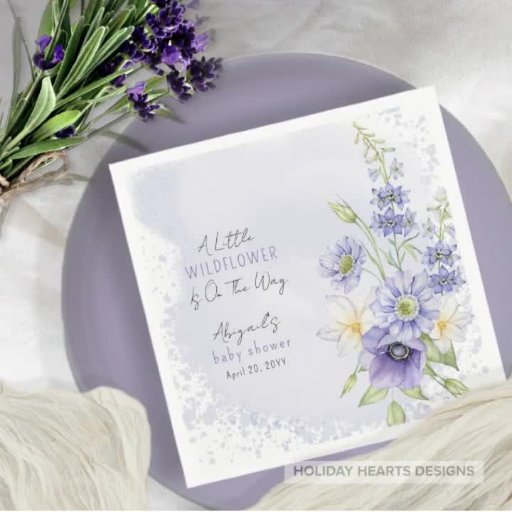 De jolis fleurs sauvages de lavande sur un arrière - plan d'aquarelle sont le décor parfait pour vos détails de Baby shower sur ce baby shower "Un petit Fleur sauvage est sur le chemin".
