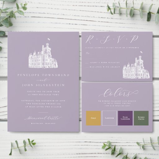 Lavender Vintage Castle Illustration Wedding