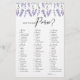 Lavender wat er in je Purse Game zit. Ontworpen met lavender die een textuur van de waterverf op een witte achtergrond heeft die in om het even welke kleur kan worden veranderd u zou verkiezen. Hoe je kunt spelen: de gamekaart bevat meerdere items die mogelijk in iemands portemonnee zitten. Elk punt is een specifiek aantal punten waard; sommige dingen zijn meer punten waard dan anderen. Je gasten kijken door hun handtas, kijken wat ze hebben die overeenkomt met wat er op de spelkaart staat. Laat ze hun punten optellen, en de persoon met de meeste punten wint een prijs.