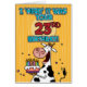" Je "le vis en troupe" étais votre 23ème anniversaire !" vache à b-jour d'amusement tenant une carte de voeux de gâteau d'anniversaire.