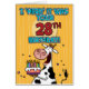 " Je "le vis en troupe" étais votre 28ème anniversaire !" vache à b-jour d'amusement tenant une carte de voeux de gâteau d'anniversaire.