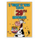 " Je "le vis en troupe" étais votre 29ème anniversaire !" vache à b-jour d'amusement tenant une carte de voeux de gâteau d'anniversaire.