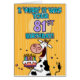 " Je "le vis en troupe" étais votre quatre-vingt-unième anniversaire !" vache à b-jour d'amusement tenant une carte de voeux de gâteau d'anniversaire.