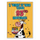 " Je "le vis en troupe" étais votre quatre-vingt-treizième anniversaire !" vache à b-jour d'amusement tenant une carte de voeux de gâteau d'anniversaire.
