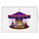 Un joli carrousel rose très coloré, une image joliment décorée, avec des chevaux en bois de toutes les couleurs et des motifs qui ajoutent vraiment une touche de carnaval ou de cirque.