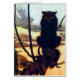 Chat noir malin aux yeux orange intense perché sur un vieil arbre pourri. "Dans la journée, elle s'est transformée en chat ou en chouette, mais le soir, elle a repris sa forme en être humain." L’illustration d’Arthur Rackham du chat noir dans le conte allemand "Jorinde and Joringel" tiré de The Brother’s Grimm, 1909.