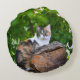 Un chat s'installe dans le jardin verdoyant, à côté d'une rondelle et regarde vers l'avant - Deux côtés différents