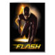 Regardez le Flash accroupi dans une position de départ de course, éclairs frappant le sol derrière lui.
