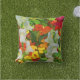 Ce beau coussin extérieur comporte un arrangement informel de jardin avec des mufliers roses et blancs, nasturces dans orange, jaune et rouge et un pavot rouge, créant un beau motif abstrait. La photographie originale a été numériquement augmentée pour produire une conception impressionniste abstraite. L'image est répétée sur le dos.