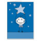 le monstre heureux bleu attrape une carte de voeux d'étoile filante