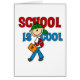 Mignon de nouveau au chiffre conception de bâton d'école avec un chiffre garçon de bâton le port d'un sac à dos et d'un texte rouge et bleu coloré qui lit la "école est frais" !