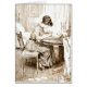 Une belle femme, portant une robe intégrale, écrivant des lettres. La nappe est poussée de côté pour adapter à ses matériaux d'écriture. La légende pour cette illustration vintage lit, "Valerie était occupée, excessivement occupé, arrangeant des sujets, en raison du grand changement imminent". (Des 1911) dessins à l'encre du 20ème siècle original par Charles Gibson. Tous droits réservés art 2013 d'aumônier de ©
