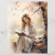 Papier recto verso avec aquarelle d'une femme lisant sous des arbres en fleurs au printemps pour vous aider à créer vos projets d'artisanat saisonnier. Parfait pour tous les types de papercraft, du scrapbooking à la journalisation des déchets.
