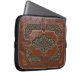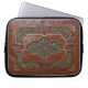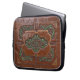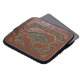 Foto van een handjevol antiek in reliëf gemaakt documentkapje in bruin, groen en goud, rond 1900.