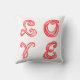 pillow LOVE tekstweefsel lettertype rode letters, geïnspireerd door het kunstteken in Love Park Philadelphia, Pennsylvania / PA, of Philly, waar de "L" en de "O" bovenaan staan, en de "V" en "E" onderaan in rood. De letters voor LO en VE zijn een lengte van stof in de vorm van de letter. De de doopvontbrieven van de stof, en de aantallen, werden gecreeerd en auteursrecht beschermd door me, Kristie Hubler, voor mijn bedrijfs logo voor Verwerkte Lijsten in http://fabricatedframes.com