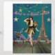 Leuke en funky vintage vignette met flapper girl foto-uitknip, roze fiets, Eiffel Tower, een gedecoreerde achtergrond met een slinger van sterren en "Leeft in een droomwereld" tekst in roze lettertype.