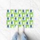 Deze doormat is bedekt met retrolimekleurige groene en blauwe rechthoeken. Voor elke keer een goed ontwerp.