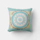 Leraar Quote Pillow in ruste: "Ik wens u alle vreugde, vrede en geluk die het leven te bieden heeft", op een lichtblauwe achtergrond, met een artiest die abstract centrum in blauwe en roomtonen heeft gecreëerd.
