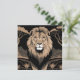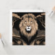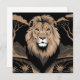 Leeuwenportret, dit ontwerp is voorzien van een afbeelding van een leeuwenportret met een kalme en superieure uitstraling. De achtergrond is een zwart-wit safarilandschap met bomen en bergen. Het afbeelding heeft een art deco stijl.