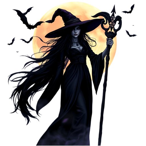 Offrez-vous la puissance enchanteresse de la nuit grâce à ce design époustouflant qui présente une sorcière mystique haute sous une lune pleine et brillante.