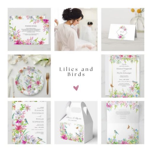 Wedding. Lilies and Birds WatercolorOntworpen door Tatiana Mitrushova