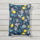 Lemon branches with blossoms and fruit on blue buitenkussen