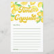 Creëer blijvende herinneringen met deze gepersonaliseerde Lemon Birthday Party Time Capsule Game! Een leuke en sentimentele aanvulling op uw citroen verjaardagsfeestje, dit spel laat gasten laat oprechte berichten voor de toekomst. Perfect voor ideeën voor een zomerverjaardagsfeestje, het past bij een zomerverjaardag, een citroenthema voor de 1e verjaardag of een citroenthema voor het 1e verjaardagsfeest. Of het nu gaat om het vieren van een 1e verjaardagsmeisje citroenthema, een eerste citroenverjaardag, of zelfs een citroen baby shower thema, deze tijdcapsule is een zoete aandenken!