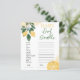 Lemon Word Scramble Baby shower Game een pittige draai aan je baby shower met onze Lemon Word Scramble Baby shower Game, een leuke en boeiende activiteit die uw gasten zal verrukken! In dit levendige spel ontwarren gasten een lijst met baby-gerelateerde woorden, elk met een verfrissend citroenthema. Het is een race tegen de klok om te zien wie de meeste woorden in de kortste tijd kan uitzoeken! Met levendige citroenillustraties en een fris, op citrus geïnspireerd ontwerp, brengen onze gamekaarten een uitbarsting van kleur en plezier aan uw evenement. De vrolijke gele accenten en speelse lettertypes maken dit spel een heerlijke aanvulling op elk baby shower decor. Met onze Lemon Word Scramble Baby shower Game kunt u een scheutje plezier en een knijpbeweging toevoegen aan uw feest, waardoor het een gedenkwaardig evenement is voor de aanstaande moeder en al uw gasten. Laat het ontwarren beginnen!