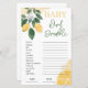 Lemon Word Scramble Baby shower Game een pittige draai aan je baby shower met onze Lemon Word Scramble Baby shower Game, een leuke en boeiende activiteit die uw gasten zal verrukken! In dit levendige spel ontwarren gasten een lijst met baby-gerelateerde woorden, elk met een verfrissend citroenthema. Het is een race tegen de klok om te zien wie de meeste woorden in de kortste tijd kan uitzoeken! Met levendige citroenillustraties en een fris, op citrus geïnspireerd ontwerp, brengen onze gamekaarten een uitbarsting van kleur en plezier aan uw evenement. De vrolijke gele accenten en speelse lettertypes maken dit spel een heerlijke aanvulling op elk baby shower decor. Met onze Lemon Word Scramble Baby shower Game kunt u een scheutje plezier en een knijpbeweging toevoegen aan uw feest, waardoor het een gedenkwaardig evenement is voor de aanstaande moeder en al uw gasten. Laat het ontwarren beginnen!