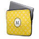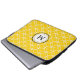 Een laptophoes met een ruitvormig geometrisch ontwerp in citroengeel en wit om aan te passen aan uw initiaal.