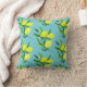 Deze trendy en stijlvolle kussen zijn voorzien van waterverf citroenen en groene bladeren op de oeiblauwe achtergrond van een rover.