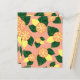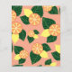 Verse sappelmoes met geïllustreerde citroenen en sinaasappels met groene bladeren, verspreid op een roze achtergrond.
