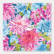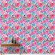 Een naadloos patroon in preppy-stijl met tinten van roze en blauwe kastbloemen met verse groene bladeren op een subtiele blauwe achtergrond. Het ontwerp combineert bloemige elegantie met een schone, eigentijdse esthetiek